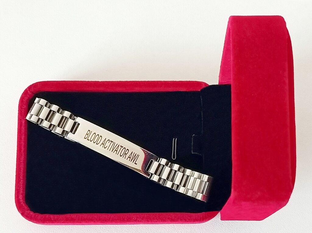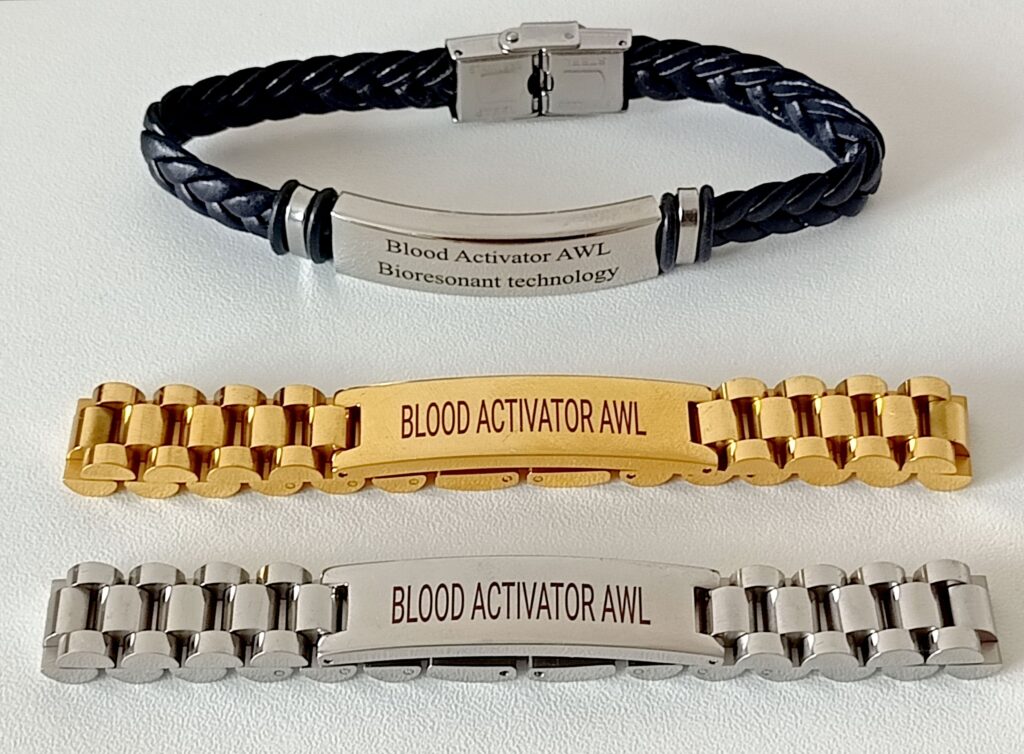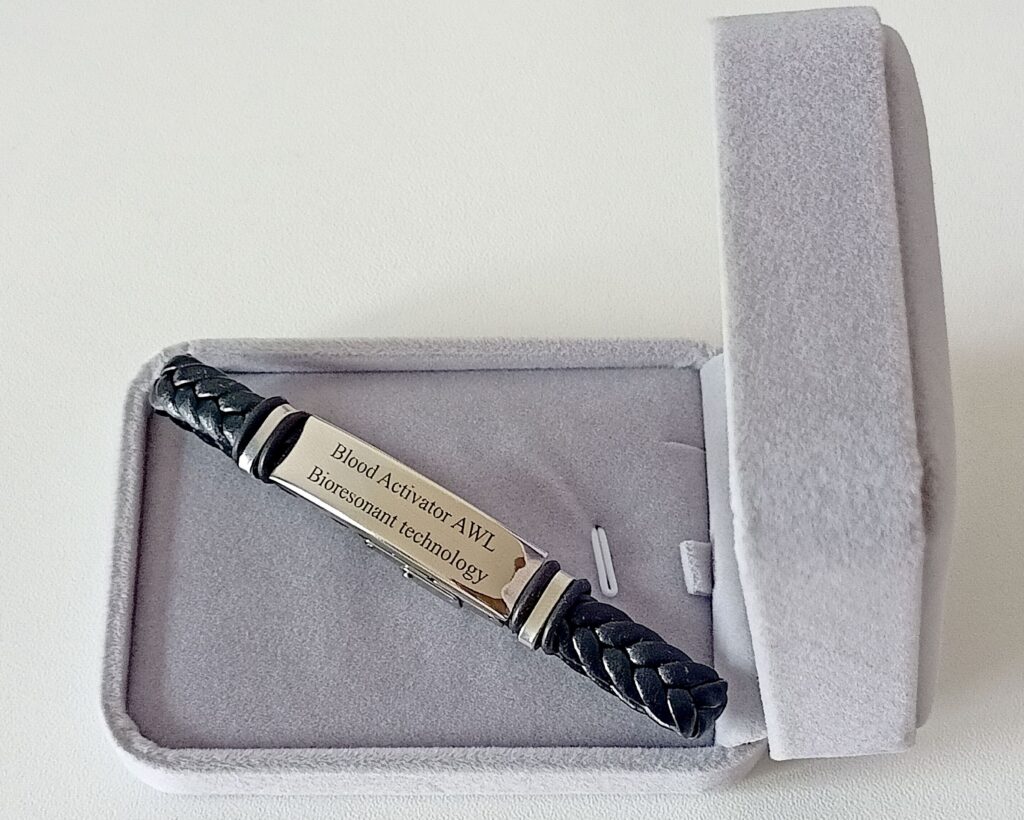 The AWL Blood Activator is a special bracelet that is worn on the left arm. This bracelet works like a computer program that acts on the blood, spleen, bone marrow, lymph and other organs at a frequency. It uses certain herbs to activate certain frequencies such as licorice, Siberian bell cedar, dandelion root, milk thistle, nettle, horsetail, raspberry leaf, Siberian ginseng, light root, black cumin, avocado seed, aloe vera, chard, etc. It forms a matrix of reducing molecules from water in the body. It also utilizes the frequencies of vitamins C, E, D, D2, D3, D4, D5, B1 – B12, K1, K2, coenzyme Q10, collagen, rutin, iron, gold, silver, platinum, magnesium, potassium, chromium, copper, zinc, LU6, L-Arginine, Berberine, Genistein, curcumin and others. A holographic matrix of a special heart crystal is also used to harmonize it. It also contains blood and lymph purifiers, a program that increases the flow of these fluids, a program for pulse contraction of microcapillaries. It reduces homocysteine in the blood. Uploads to organs, holographic spillars of bio-singularities. A program that spins the blood is also very effective. A very sick person has a blood spin of about 10 spins left and right. A healthy person around 120 spins left and right. The blood activator sets the blood spin in sick people at 45 spins left and right and slowly raises it gradually over several weeks so that the body does not have a strong reaction to the detoxification. The blood activator sets the brain frequency to 70-120 Hz. If you use the AWL photon ball or cosmic crystal, then the frequencies at which these programs are set are preferred. It generates a multi-functional sound containing all frequencies. This increases the energy in the body, which is very measurable on the Bovis energy chart. It also creates several billion holographic nanobots in the body that clean the blood vessels. It increases the polarity and electrical voltage in the cells. This results in better nourishment of the cells and getting rid of the waste that the cells produce.